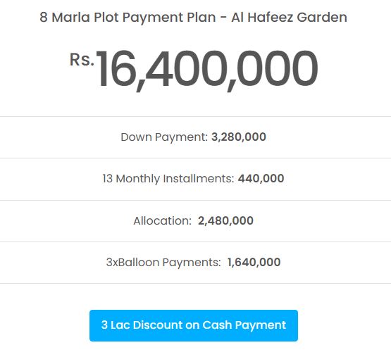 8 Marla plot payment plan-Al Hafeez Garden