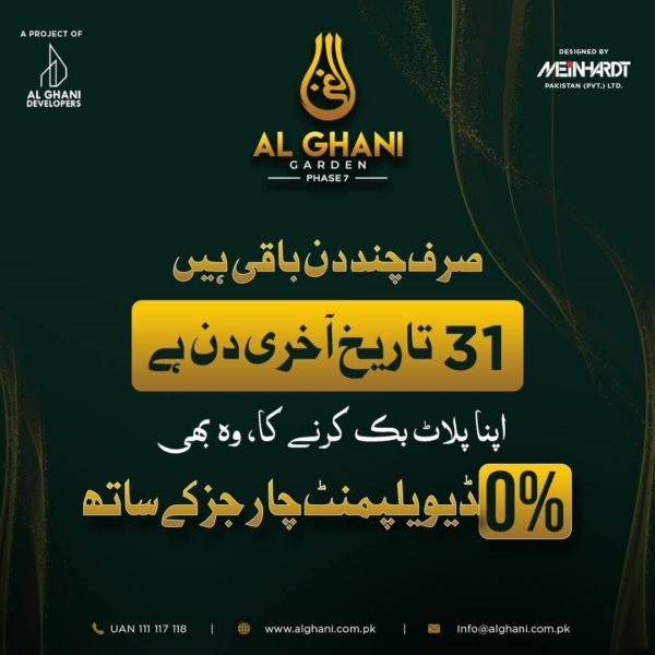 آسان اقساط کے ساتھ اپنے خوابوں کی جگہ Al Ghani Garden Phase 7 میں حاصل کریں۔